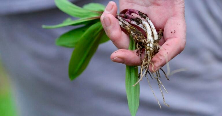 Lynn Symons from Guilford gathers ramps on April 19, 2024.