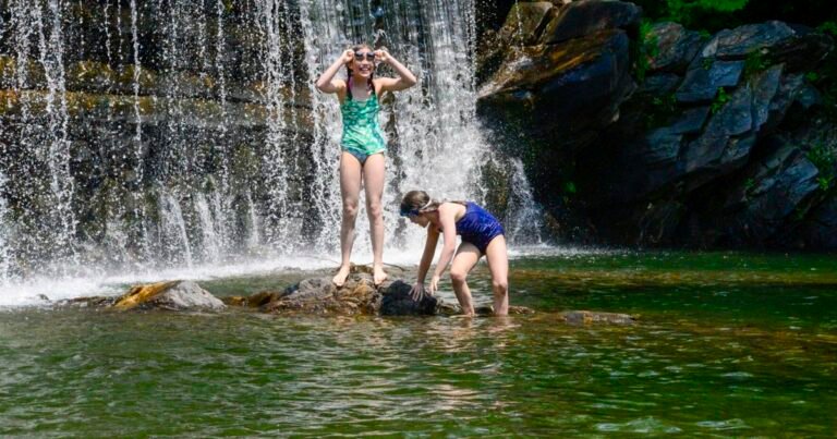 People in Guilford cool off at Green River Timber Crib Dam as temperatures hit the high 90s on June 19, 2024.